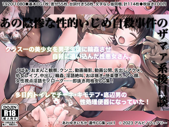 あの陰惨な性的いじめ自殺事件のザマァ系後日談〜クラス一の美少女を男子生徒に輪●させ自殺に追い込んだ性悪女さん、多目的トイレでチー牛・キモデブ・底辺男の性処理便器になっていた!【アルビノフェアリー】