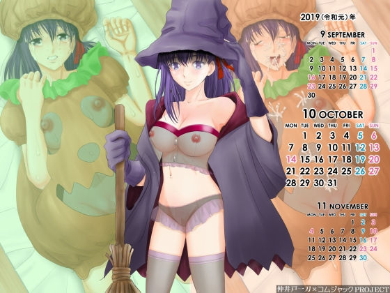 【無料】ハロウィンコス!!『fa○e』『間○ 桜』さんのハロウィン魔女+スケスケ下着姿の壁紙カレンダー2019年10月用【コムジャックPROJECT】